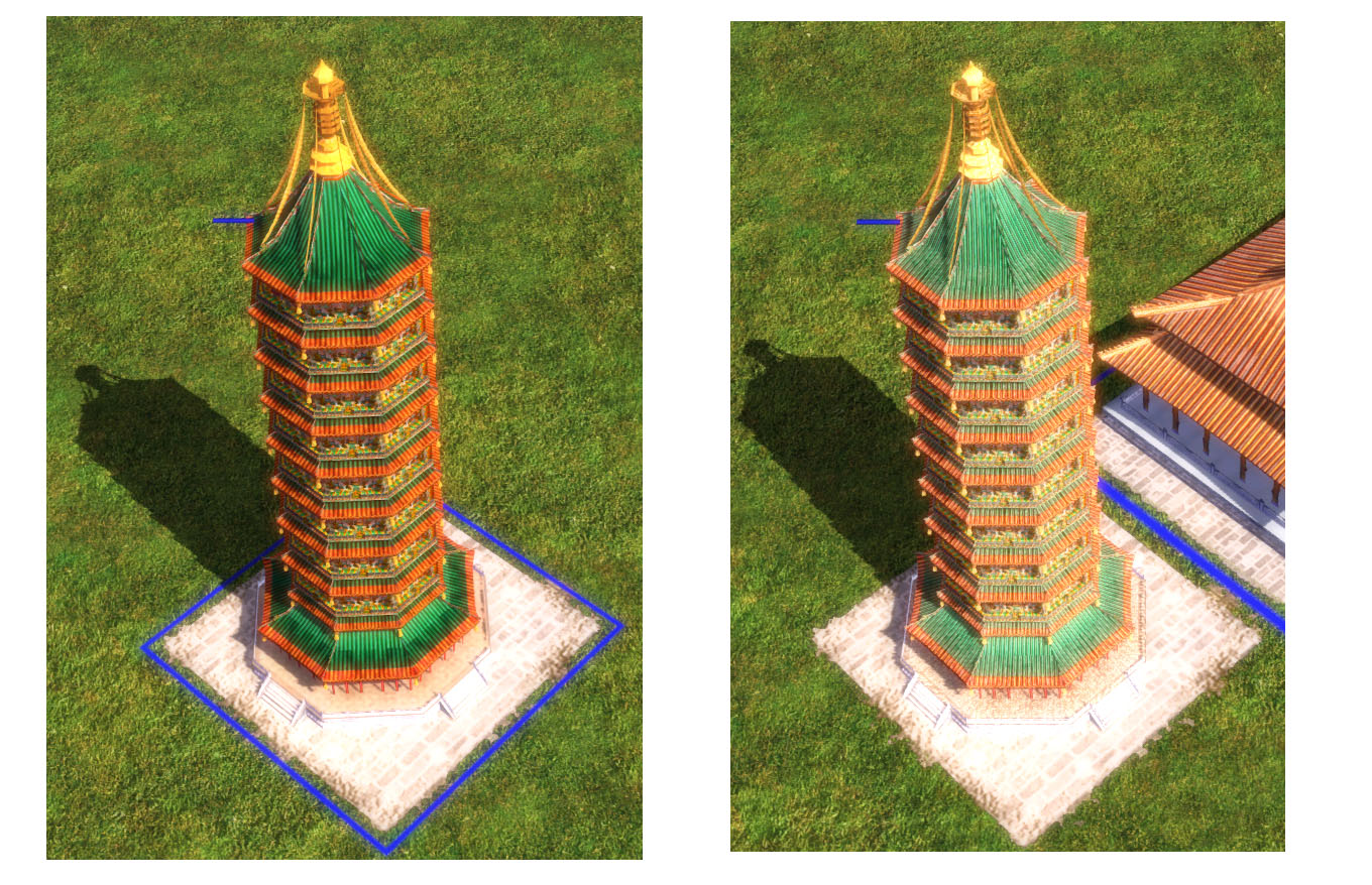 对于模型而言 面与面之间的过度有时会需要进行平滑处理 以使其更加平顺以及以较低面数呈现较高面数的效果(例如柱子) 或称软硬边 效果见下图原版的颐和园 关于模型平滑 在max中 有两种手法可以实现