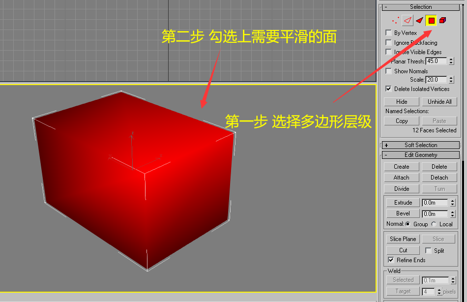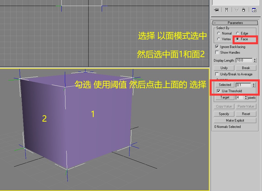 其一:法线平滑 max中操作如下 以新建立方体为例