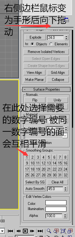 方法二(平滑组平滑)如果遇到平滑组点击无效的问题 需要检查面是否连续 边线是否焊接 可以在面层级下选择面进行移动 如果与别的面有拉扯证明是连续的 如果面单独被移动则说明未连续 平滑组无效 解决办法是右键转换可编辑多边形(poly)在边层级下全选并焊接(weld) 焊接完成后可选择直接退出层级或右键二转(网格、多边形均可)后续按正常流程进行操作即可