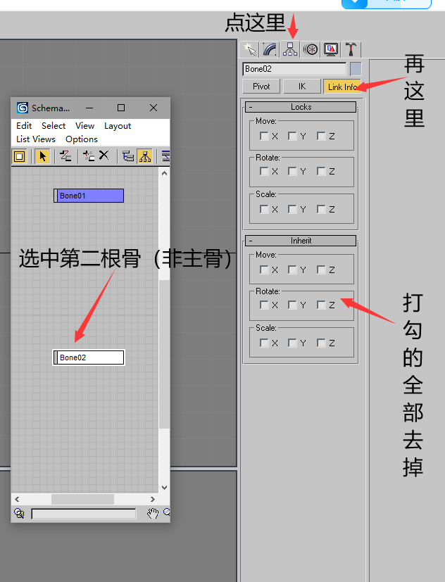帝国中骨骼与max中不同 经常出现max是一个样 游戏内是另一个样的情况 最主要的原因 经过多方查证 目前确定是骨骼的继承关系(父子级关系)即:当max创建一段(两根及以上)骨骼时,骨骼会自动创建一段继承关系 此时对第一根骨骼进行调整 会影响到后一根骨骼 解决方案如图