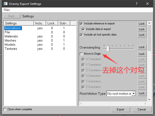 导出gr2后如果发现动作位置和max中不同 比如半身入土或者朝向不对之类 就如图进行设置 使动画在de中坐标不要归零 保持在max中的位置